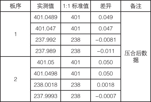 2)一次試做時(shí)鋁板按1:1鉆孔,壓合后NPTH孔到孔距離測(cè)量數(shù)據(jù)。