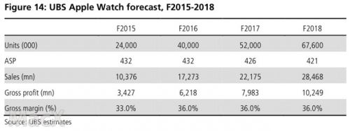 在2016財(cái)年,Steven Milunovich 認(rèn)為 Apple Watch 的銷量會(huì)提升至4000萬(wàn),銷售額達(dá)到170億美元,利潤(rùn)為62億美元。截止至2018年,他認(rèn)為 Apple Watch 的銷量能達(dá)到6760萬(wàn)。