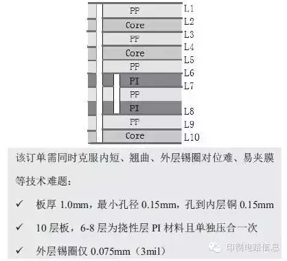 圖1為從美市場搶回的一個10層剛撓結(jié)合板的訂單難度情況描述:
