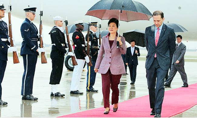 韓總統樸槿惠抵達美安德魯斯空軍基地