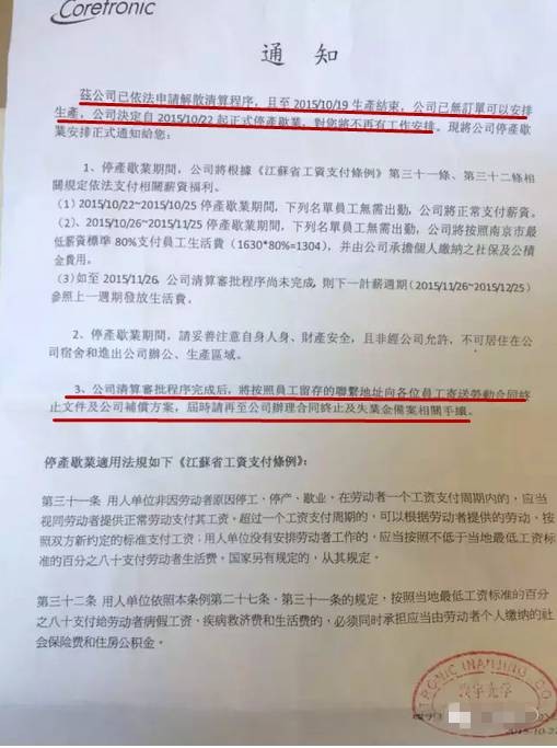 10月22日,臺灣一大、際前三大面板廠之一的中強光電位于南京的分廠——璨宇光學(南京)有限公司下發通知:目前公司已依法申請解散清算程序,正式停產歇業!