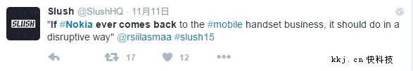 近日,諾基亞董事會主席Risto Siilasmaa在Slush 2015大會上表示,“如果(諾基亞)重返手機市場,必將以一種顛覆性方式出現”。