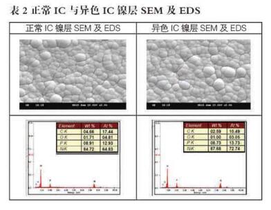 2.2.3正常IC與異色I(xiàn)C鎳層SEM及EDS分析
