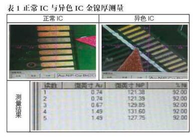 2.2.2正常IC與異色I(xiàn)C金鎳厚測(cè)量