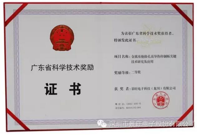 2月16日,廣東省委、廣東省政府在廣州召開廣東省創(chuàng)新驅(qū)動發(fā)展大會,省委書記胡春華出席會議并作重要講話,省長朱小丹主持會議,省人大常委會主任黃龍云、省政協(xié)主席王榮出席會議,以及各市相關(guān)領(lǐng)導(dǎo)、獲獎項目代表等人員參加會議,景旺電子技術(shù)中心材料研發(fā)部經(jīng)理陳毅龍參加會議。會上表彰獲得2015年度廣東省科學技術(shù)獎的先進單位和個人,獲獎的項目分別是特等獎1項,一等獎25項,二等獎75項,三等獎134項;其中,景旺電子科技(龍川)有限公司、深圳市景旺電子股份有限公司、廣東工業(yè)大學聯(lián)合研發(fā)的“金屬基絕緣孔高導(dǎo)熱印制板關(guān)鍵技術(shù)研究及應(yīng)用”項目獲得“2015年度廣東省科學技術(shù)獎二等獎”。
