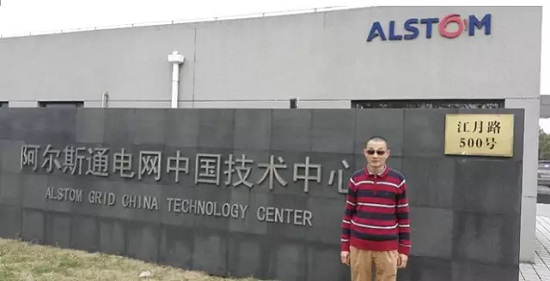 文總參觀GE-阿爾斯通電網中技術中心后,在門前合影留念。