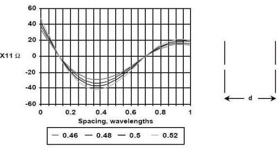 下圖是兩個(gè)半波雙極的相互阻抗實(shí)例: