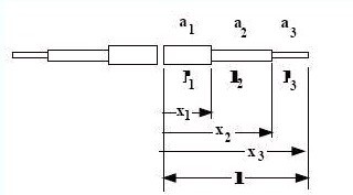 逐步縮減半徑(step-tapered)之雙極天線的自我阻抗,是和雙極元素直接相關(guān),這是由「套迭式管(telescoping tubing)」構(gòu)成,如下圖。套迭式管是一種使用在較大型天線中的物理設(shè)計(jì),能在不產(chǎn)生過度風(fēng)阻和增加額外重量的情況下,提供機(jī)械強(qiáng)度。