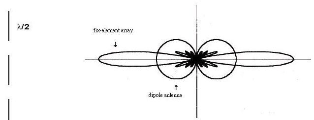 輻射器的數(shù)組利用其個(gè)別元素,可以產(chǎn)生大量的增益。數(shù)組的增益是數(shù)組因素與元素增益的乘積。很多數(shù)組是在一個(gè)假設(shè)下設(shè)計(jì)的,此假設(shè)是:饋給系統(tǒng)導(dǎo)致每一個(gè)元素都有一個(gè)規(guī)定的電流與相位。這通常忽略了鄰近雙極元素之間的相互阻抗之影響。前面已談過可用四分之一波長(zhǎng)的電線來饋給每一個(gè)元素,以致它們的電流都相等。然而,使用一般的饋給法,想要得到極大的相位差是很困難的。