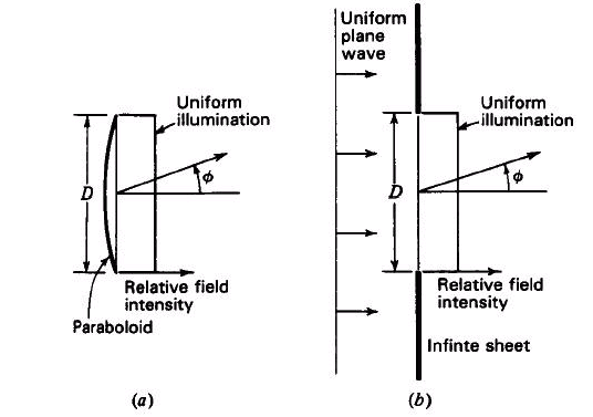 這是假設(shè)孔徑的照射度是平均分布的(uniform)。更精確地說,遠(yuǎn)場(chǎng)場(chǎng)型是分布在孔徑各處的電場(chǎng)之傅立葉變換,并且考慮到孔徑平面各處之振幅及相位的變動(dòng)。