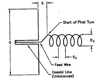 為了完整的運(yùn)作,周長(zhǎng)必須是 0.75 < Cλ = πDλ < 1.33。俯仰角是 α = tan-1(Sλ /Cλ) 。增益值大約是 G dBi = 11.8 + 10log(Cλ2nSλ), 而 HPBW = 52/Cλ 度。中央饋線的饋點(diǎn)電阻是 R = 140Cλ,周圍饋線是 R = 150/