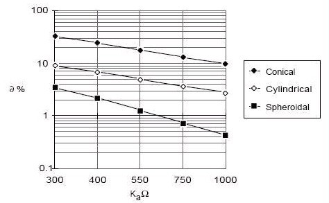 取得共振(X = 0),從正確的半波長(zhǎng)縮短之百分比,顯示如下。