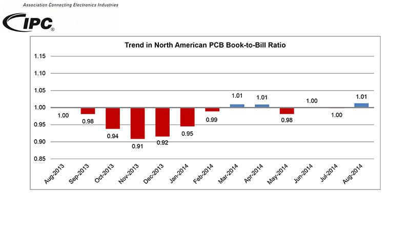 014年10月20日,美伊利諾伊州班諾克本-IPC-際電子工業(yè)聯(lián)接協(xié)會?上月發(fā)布了《8月份北美地區(qū)PCB行業(yè)調(diào)研統(tǒng)計報告》。報告顯示8月份的銷售量和訂單量,均弱于去年同期水平,但是訂單出貨比有所增強。