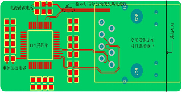 圖 3一體化連接器的網(wǎng)口PCB布局、布線參考圖
