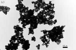 圖 2 制備納米銀的TEM分析:(a)抗壞血酸還原,(b)硼氫化鉀還原,(c)硼氫化鉀加PAAS分散劑